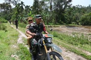 GN-Bupati Humbang Hasundutan, Dr. Oloan Paniaran Nababan, SH, MH bersama Dandim 0210/TU Letkol Kav Ronald Tampubolon, SH, M.Han melaksanakan peninjauan rencana pembukaan jalan dalam program...