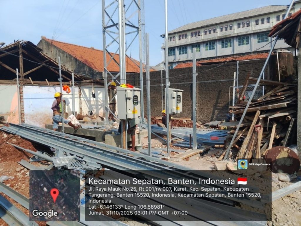 Contoh pembangunan Tower Milik PT Pratelindo di jalan Raya Mauk No.25, RT. 001/RW.007, Karet, kecamatan Sepatan di duga tidak memiliki izin dari dinas terkait.