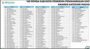 Penghargaan UHC Awards merupakan bentuk apresiasi pemerintah pusat kepada daerah yang dinilai berhasil mencapai cakupan kepesertaan JKN yang luas dan berkelanjutan, sehingga masyarakat memperoleh akses layanan kesehatan secara menyeluruh.
