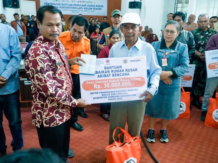 DOLOKSANGGUL, garudanusantara.net - Pemerintah Pusat melalui Badan Nasional Penanggulangan Bencana (BNPB) serahkan bantuan stimulan perbaikan rumah Rusak Ringan (RR) dan...