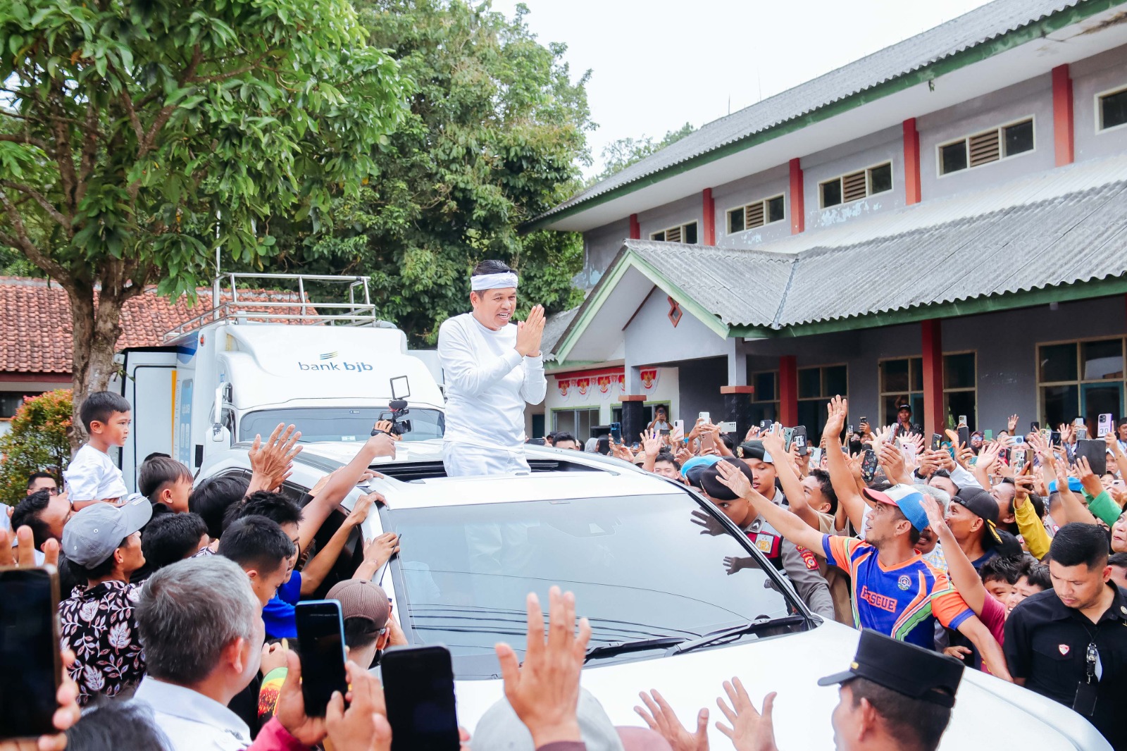 “Yang namanya masyarakat mendengar bantuan, yang memenuhi syarat dan tidak memenuhi syarat tetap harus dibantu,” ujar Dedi, disambut riuh tepuk tangan warga.