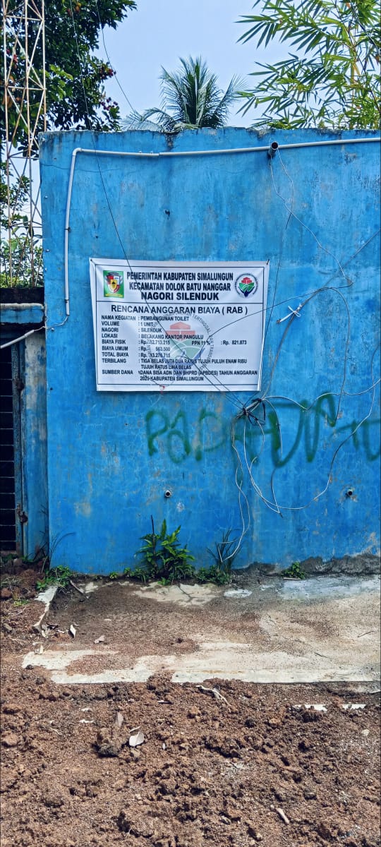 Silenduk-Simalungun, garudanusantara.net | Proyek pembangunan 1 unit toilet di belakang Kantor Desa Silenduk Kecamatan Dolok Batu Nanggar, Kabupaten Simalungun mengalokasikan...